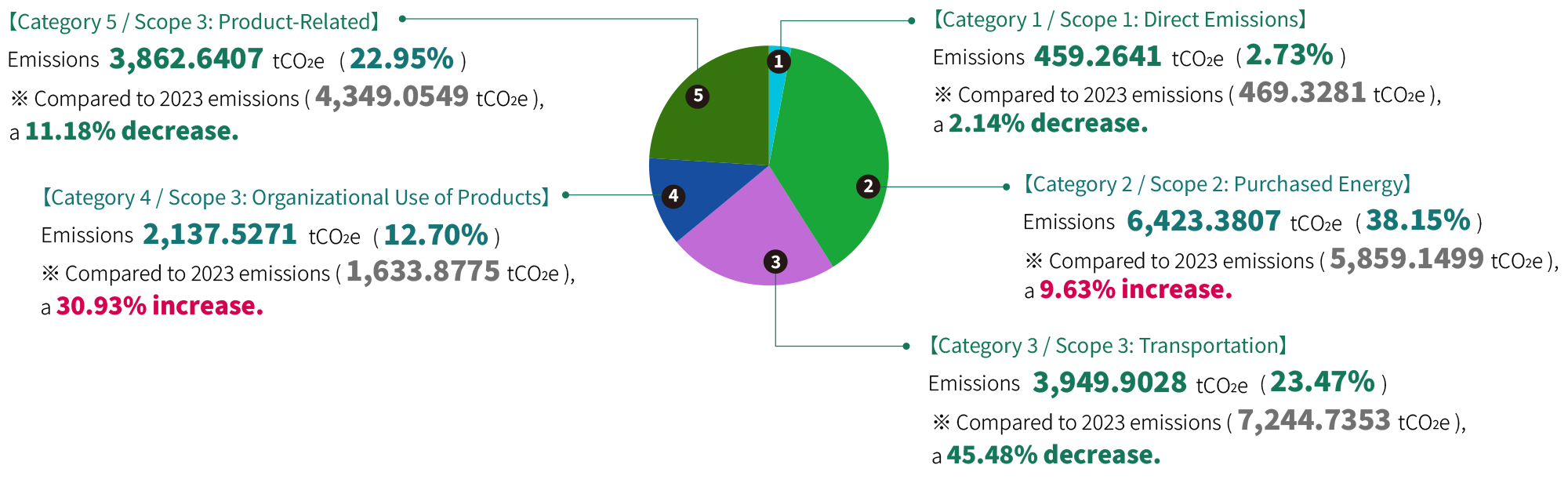 ●ในปี 2024 ผลรวมการปล่อยก๊าซเรือนกระจกโดยตรง (หมวด 1) จากเขอจง (รวมหอพัก) เคียน และสำนักงานสหรัฐฯ เท่ากับ 459.2641 ตันเทียบเท่าคาร์บอนไดออกไซด์ หรือคิดเป็น 2.73% ของการปล่อยทั้งหมด