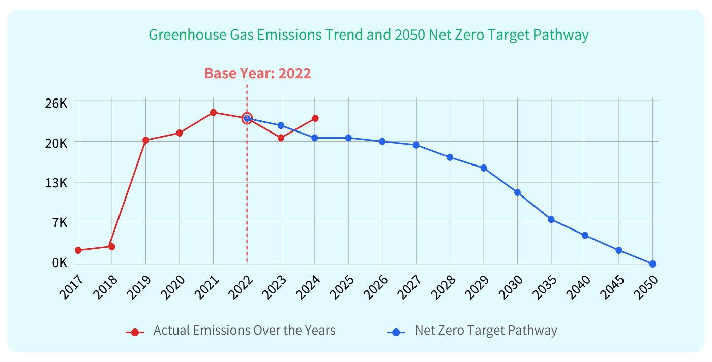 ‧ 2023-2024: ระยะปรับปรุงบัญชี มีการเพิ่มสถานที่ใหม่คือ Keyan (เริ่มปี 2023) และสำนักงานในสหรัฐอเมริกา พร้อมกับการบัญชีการปล่อยก๊าซในขอบเขต Scope 1 และ 2 เพื่อสร้างระบบบัญชีคาร์บอนทั่วโลกที่ครบถ้วนมากขึ้น